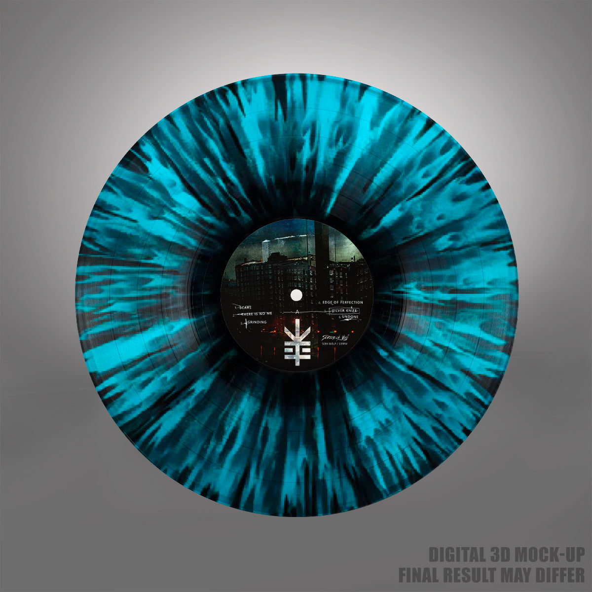 Turquoise 12" vinyl (33 rpm) with black splatters in gatefold sleeve. Limited to 100 copies worldwide.